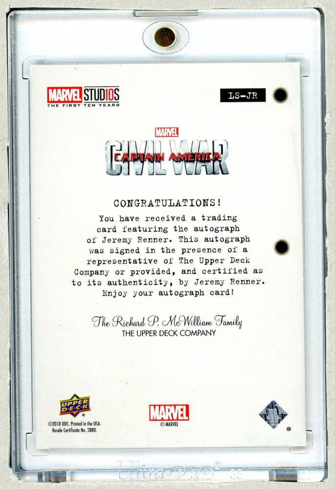 2019 Upper Deck Marvel Studios First Ten Years Jeremy Renner as Clint Barton/Hawkeye Legendary Scripts Autographs (Looking Right)