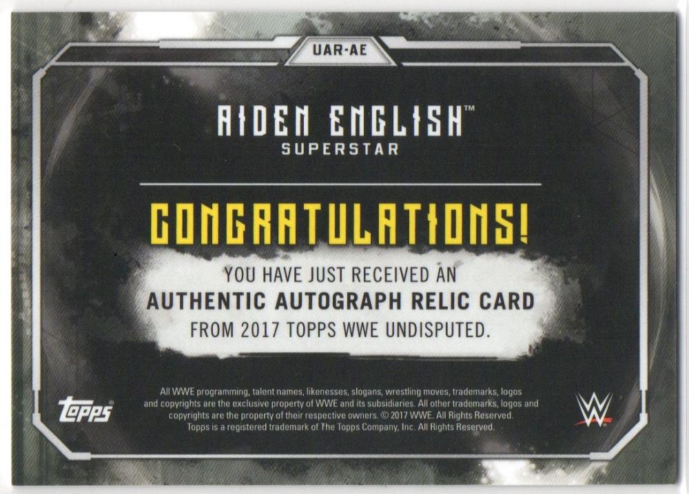 2017 TOPPS WWE Undisputed Undisputed Autograph Relic Parallel Silver Aiden English 5/50