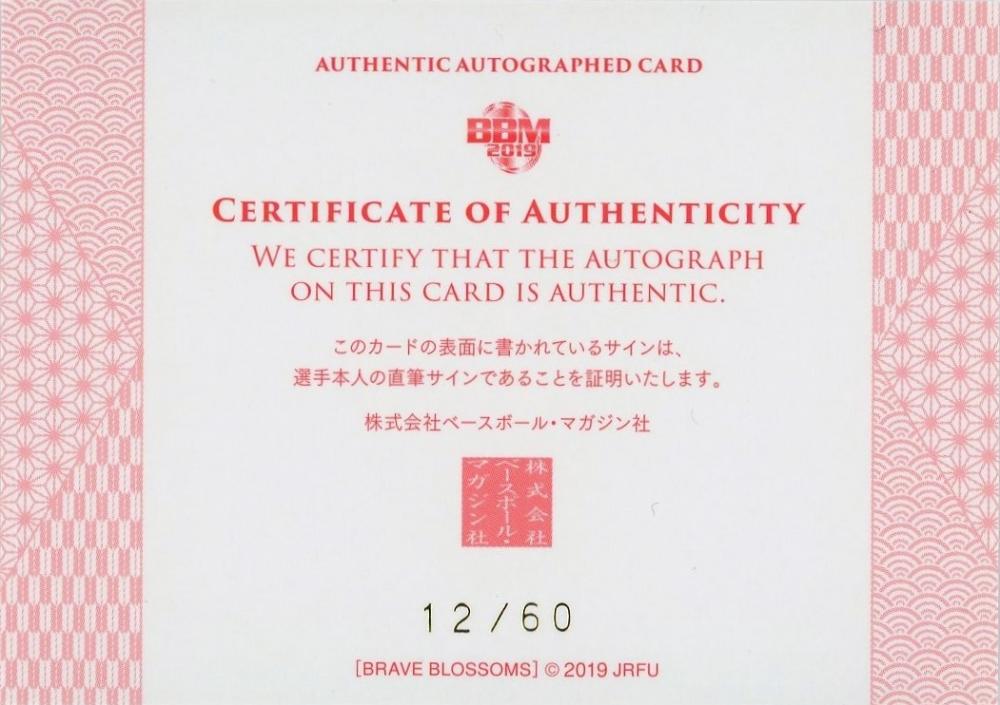 BBM 日本ラグビーカード 2019 三浦昌悟 直筆サインカード 12/60