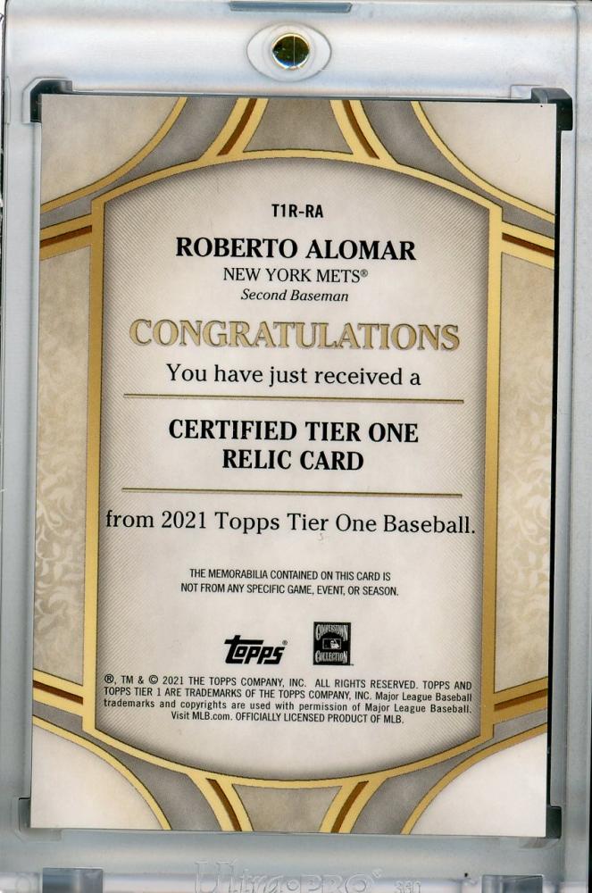 2021 Topps Tier One New York Mets Roberto Alomar Tier One Relics 123/299