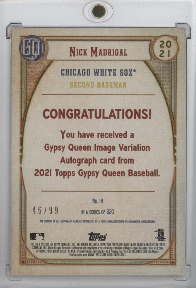 2021 TOPPS GYPSY QUEEN Image Variations Autograph Card Nick Madrigal 【46/99】