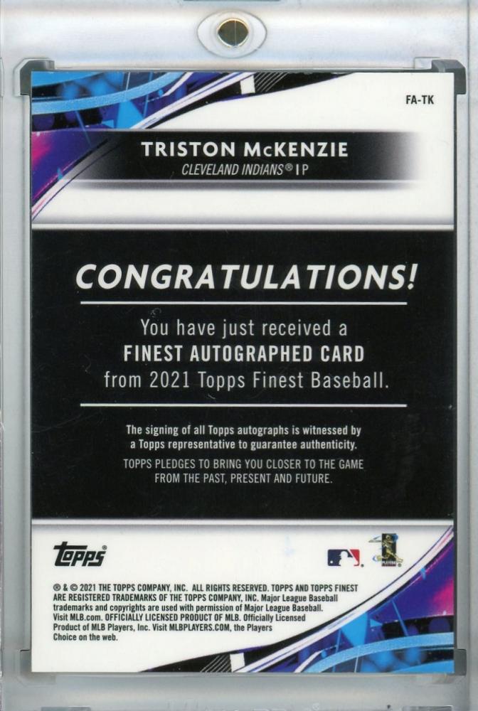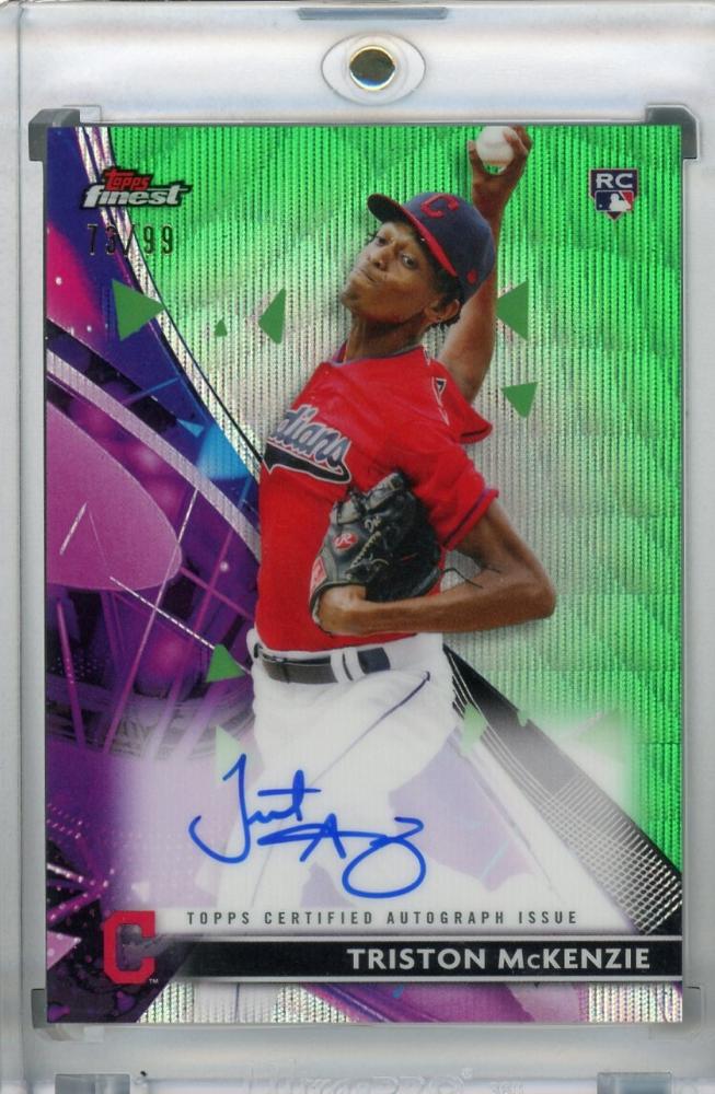 2021 Topps Finest Cleveland Indians Triston Mckenzie Finest Autographs Green Wave Refractor (パラレル版) 73/99