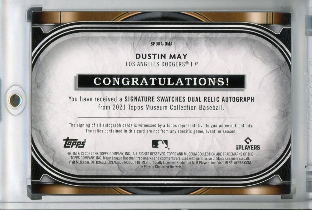 2021 Topps Museum Collection Los Angeles Dodgers Dustin May Single-Player Signature Swatches Dual Relic Autographs Copper パラレル版 (Lastナンバー!) 50/50