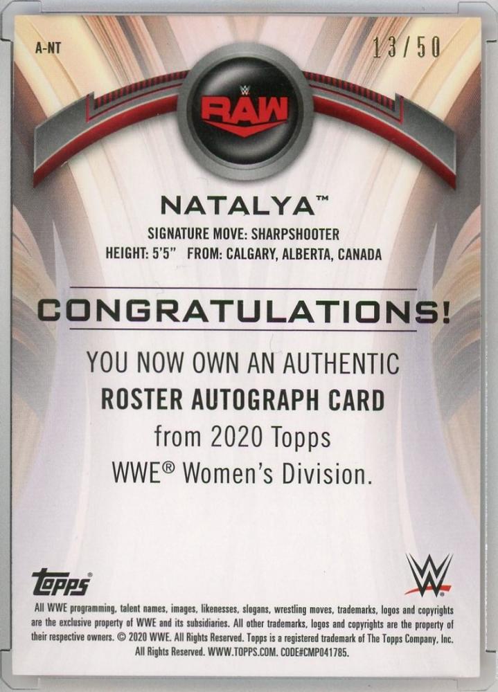 2020 Topps WWE Woman's Division Natalya Autographs Orange #ANT 13/50