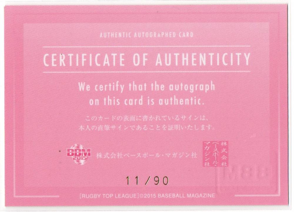 2015-2016 BBM ジャパンラグビー TOP LEAGUE ホンダヒート 後藤駿弥 直筆サインカード 11/90
