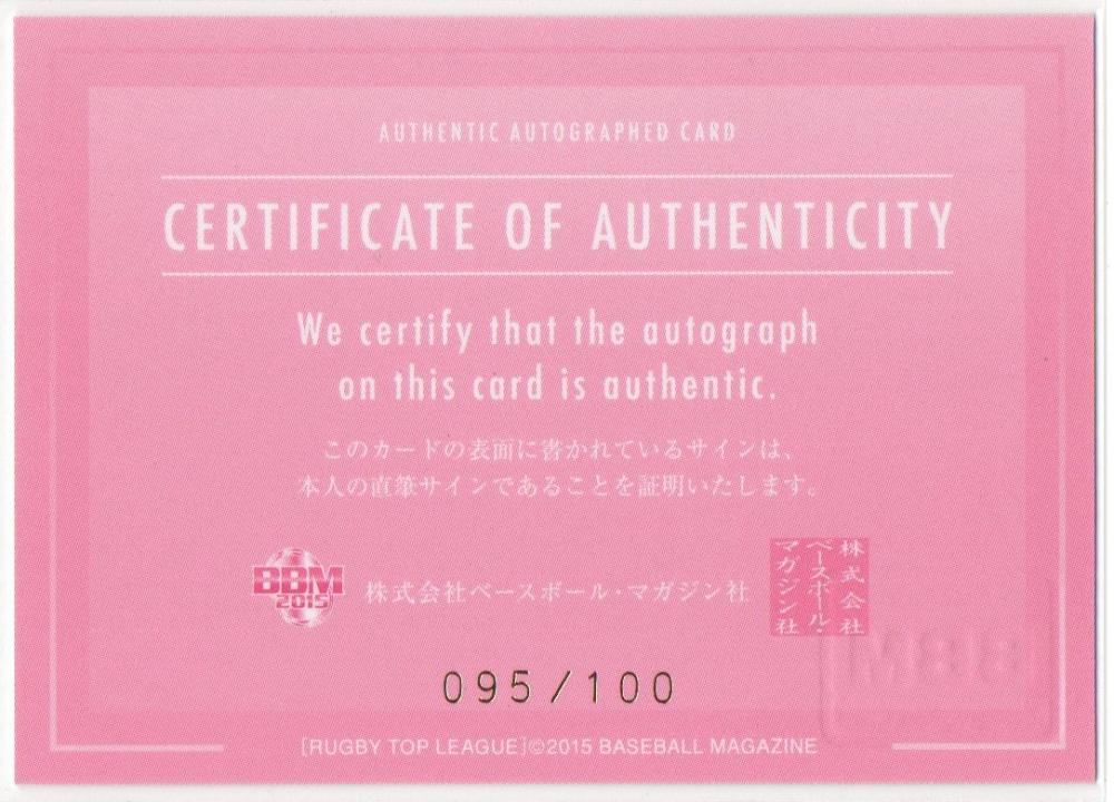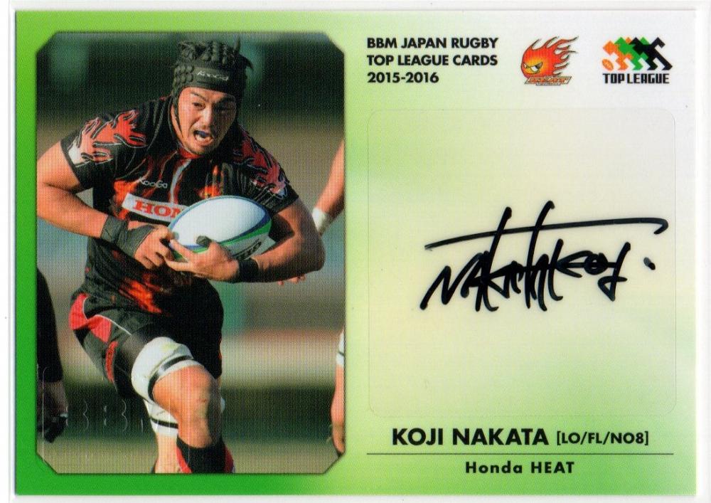 2015-2016 BBM ジャパンラグビー TOP LEAGUE ホンダヒート 中田晃司 直筆サインカード 95/100
