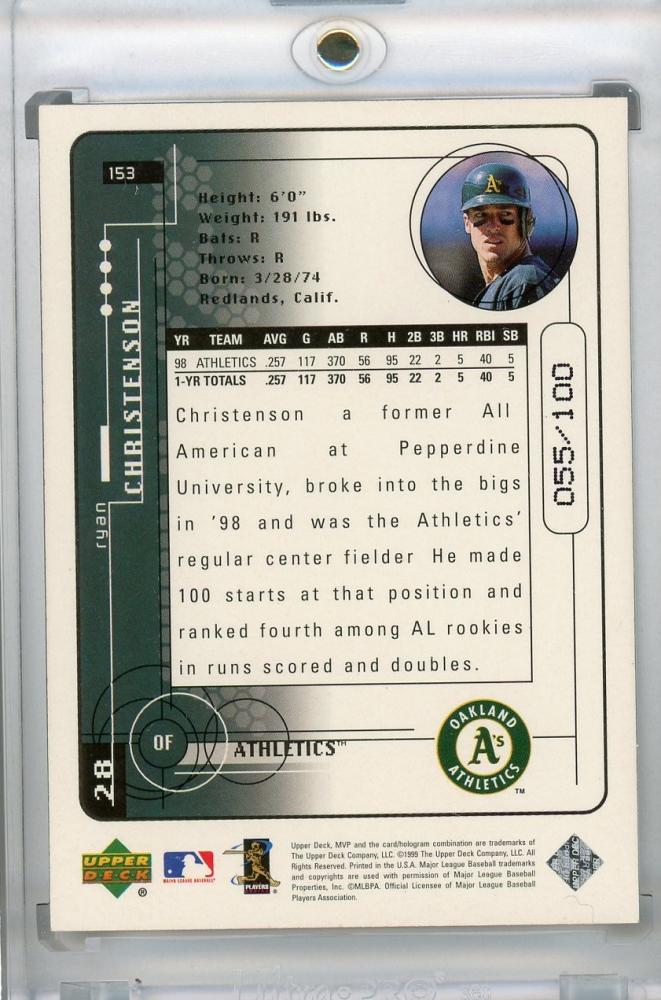 1999 Upper Deck MVP Oakland Athletics Ryan Christenson Base Gold Script (パラレル版) 055/100