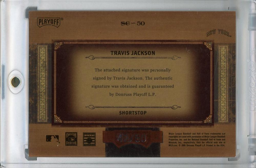 2005 Playoff Prime Cuts New York Giants Travis Jackson Souvenir Cuts 42/50
