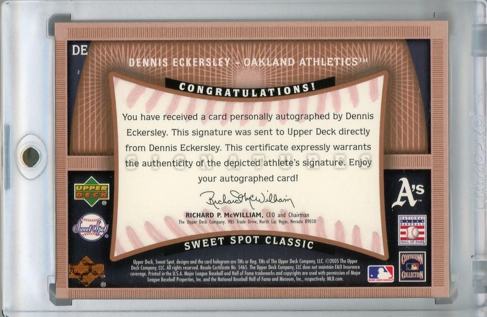 2005 Upper Deck Sweet Spot Classic Oakland Athletics Dennis Eckersley Signatures