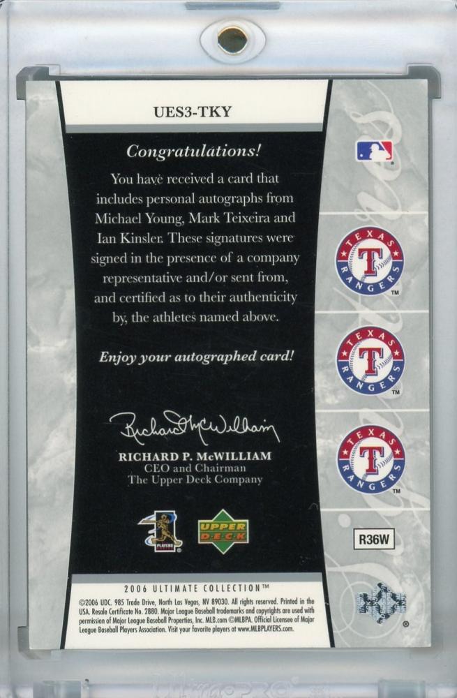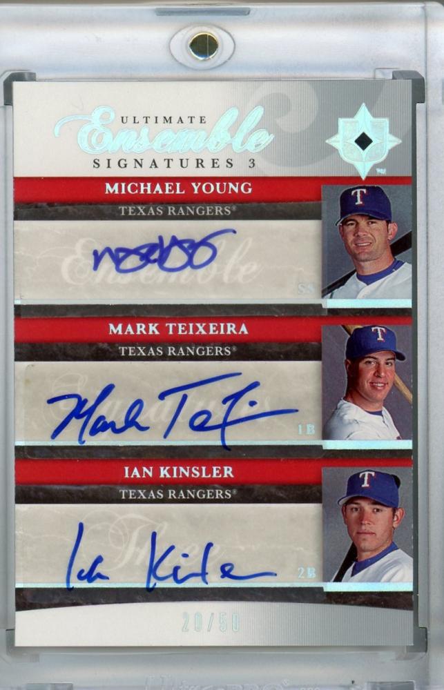2006 Upper Deck Ultimate Collection Texas Rangers Michael Young/Mark Teixeira/Ian Kinsler Ensemble Signatures Triple 20/50