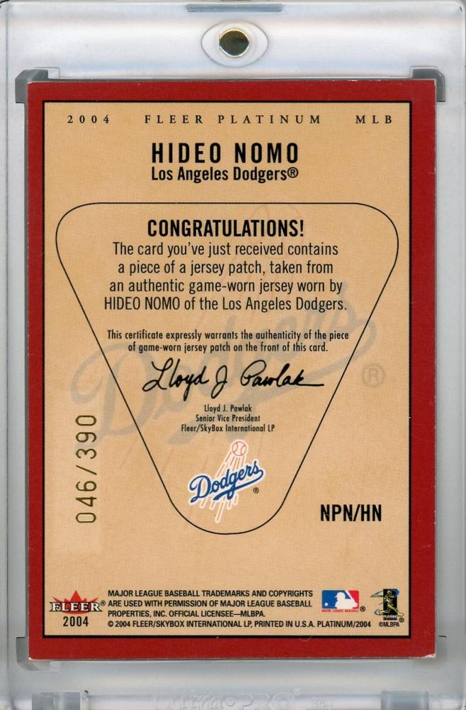2004 Fleer Platinum Los Angeles Dodgers Hideo Nomo Nameplates Team 046/390