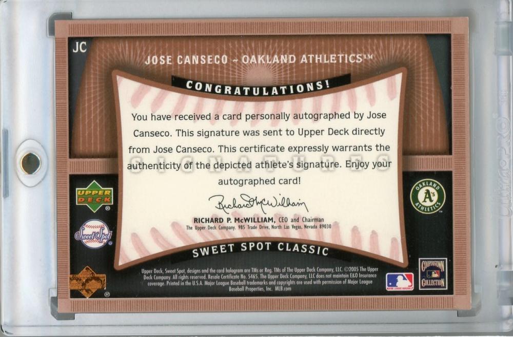2005 Upper Deck Sweet Spot Classic Oakland Athletics Jose Canseco Signatures