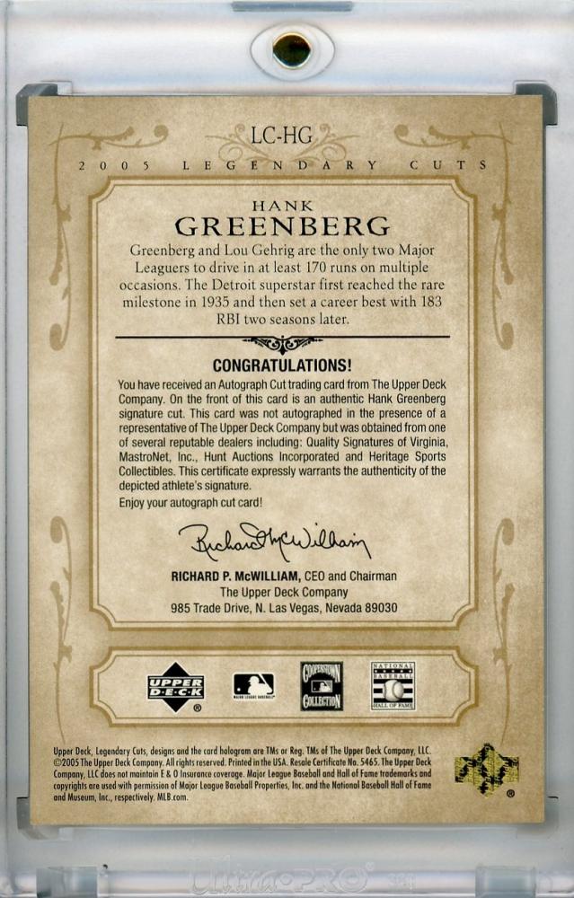 2005 Upper Deck SP Legendary Cuts Detroit Tigers Hank Greenberg Autograph Cuts 03/44