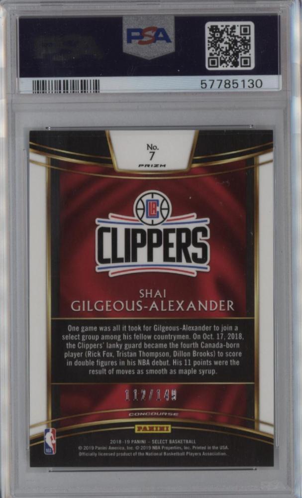 【PSA9】2018-19 PANINI SELECT White Prizm Shai Gilgeous-Alexander【112/149】