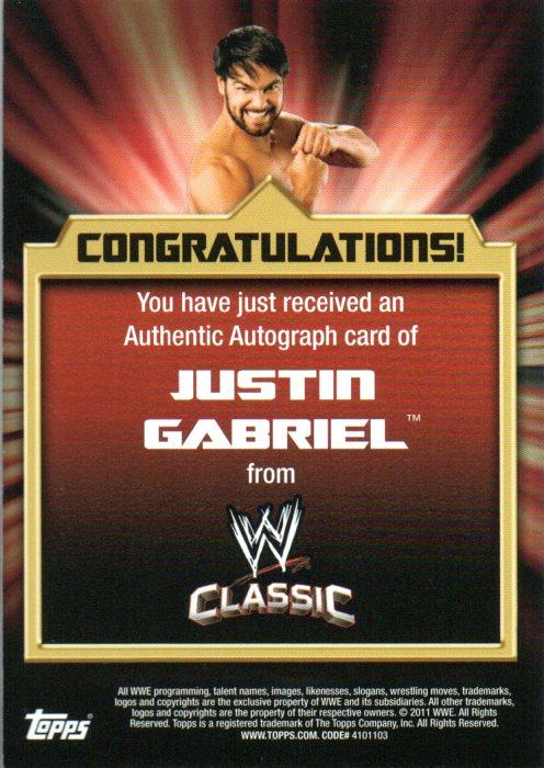2011 TOPPS WWE Classic Justin Gabriel Autograph
