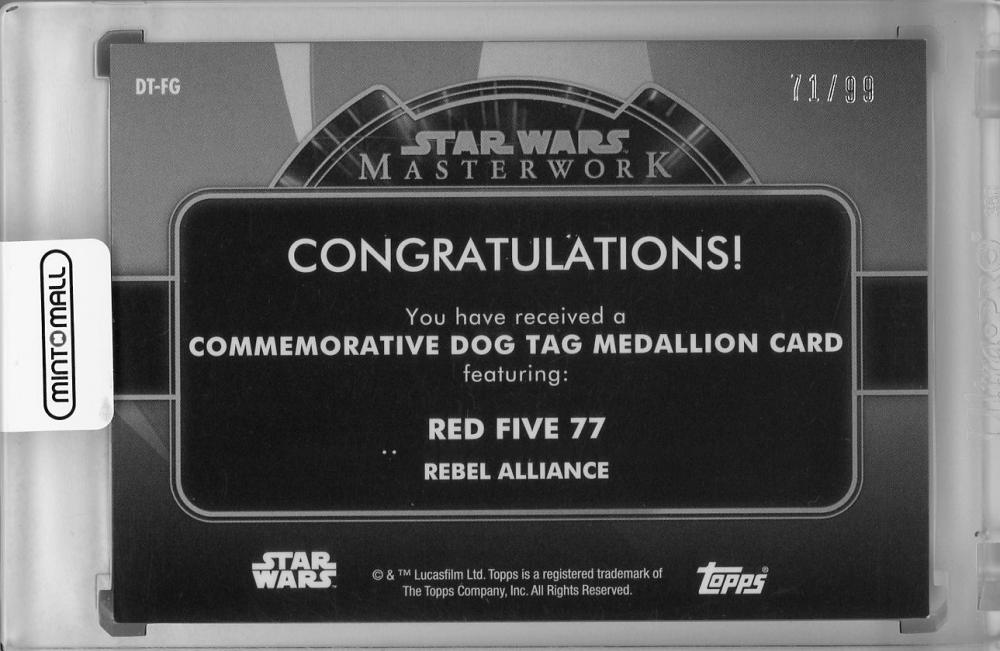 2020 Topps Star Wars Masterwork Garven Dreis - Red Five 77 Commemorative Dog Tag Medallion 71/99
