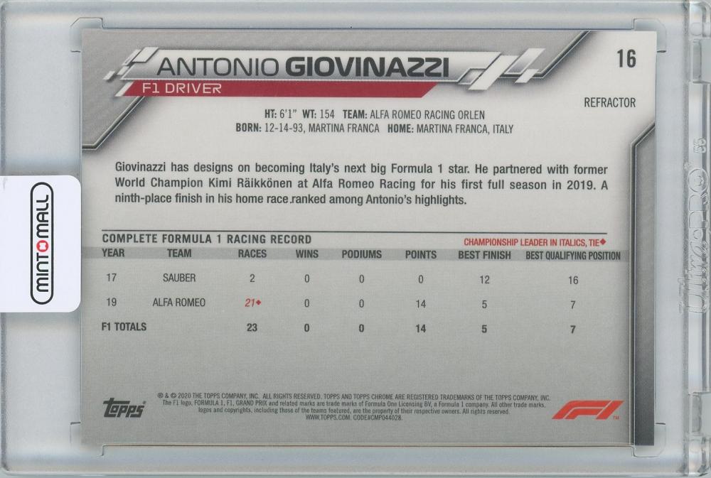 2020 TOPPS Chrome Formula 1 Refractors #16 / ANTONIO GIOVINAZZI(Alfa Romeo Racing Ferrari)