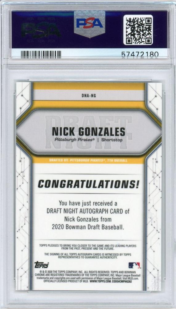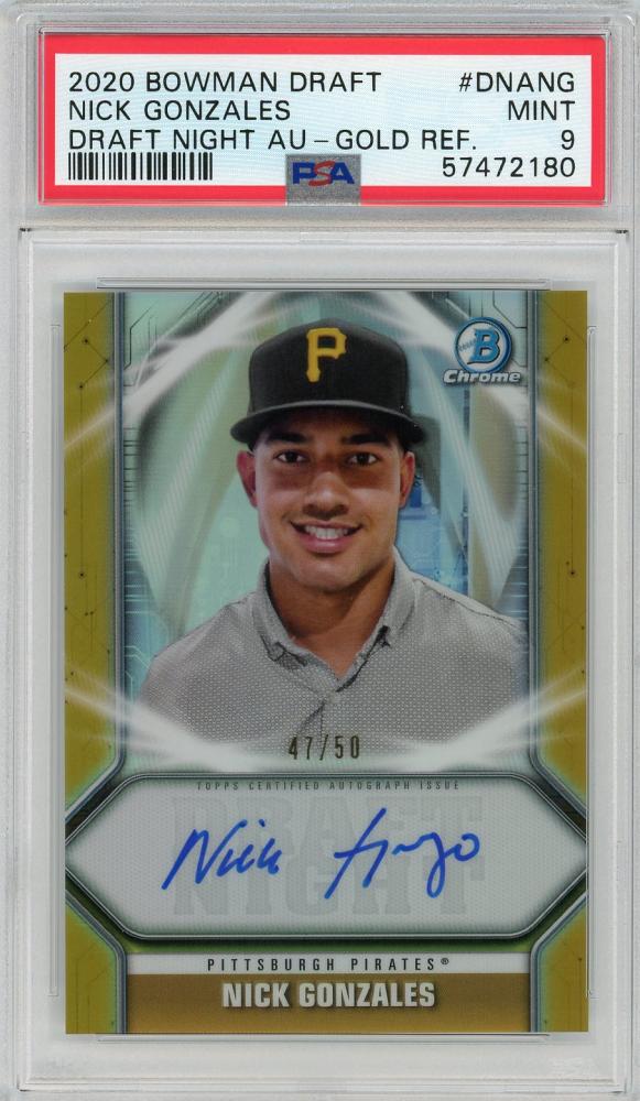2020 Topps Bowman Draft Pittsburgh Pirates Nick Gonzales Draft Night Autographs Gold Refractors (パラレル版) (PSA鑑定済) 47/50