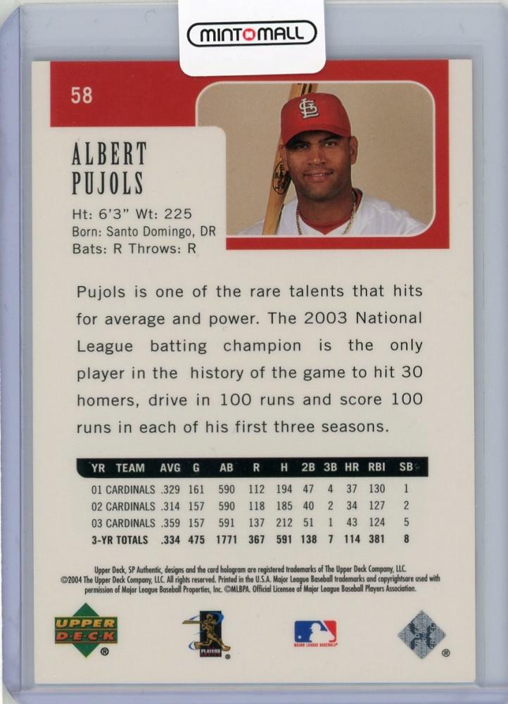 2004 Upper Deck SP Authentic St. Louis Cardinals Albert Pujols Base Game-Dated (1of1!) 1/1