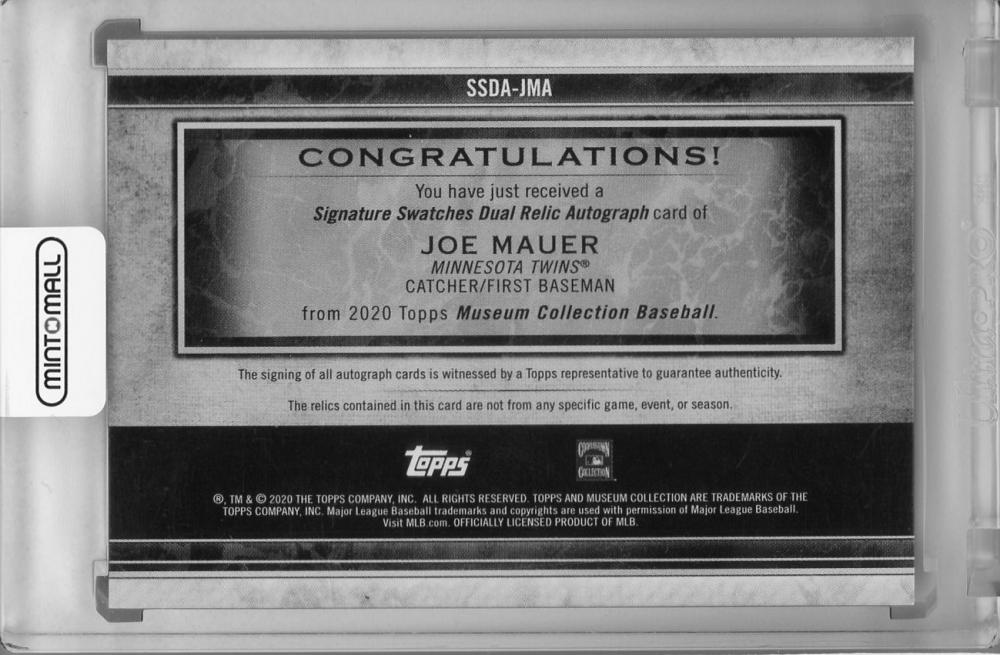 2020 Topps Museum Collection Minnesota Twins Joe Mauer Single-Player Signature Swatches Dual Relic Autograph Copper 43/50