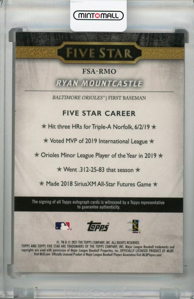 2021 Topps Five Star Baltimore Orioles Ryan Mountcastle Base Autographs