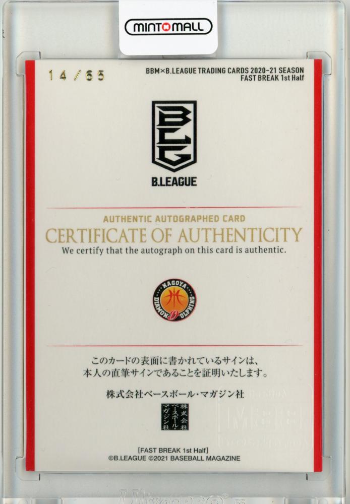 2020-21 BBM B.LEAGUE FAST BREAK 1st Half 木下 誠 直筆サインカード 14/65