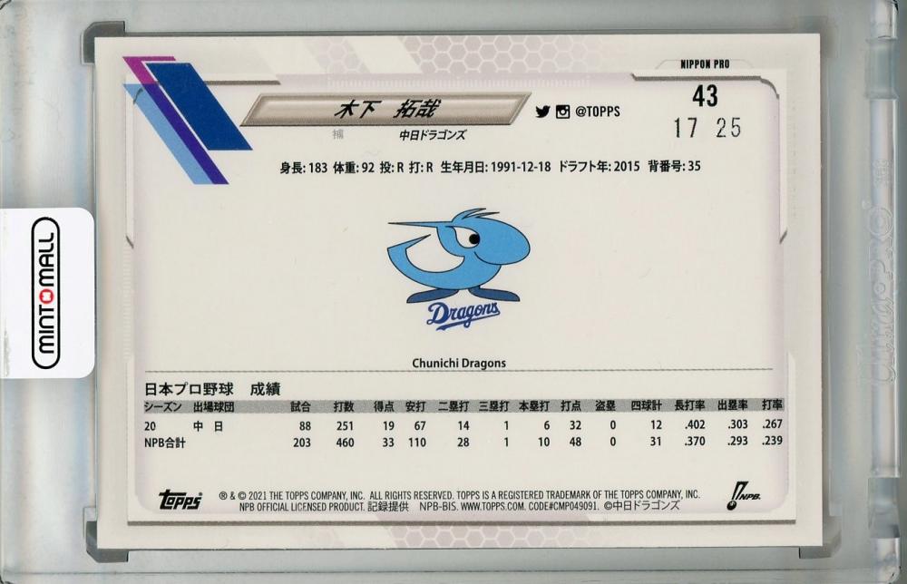 2021 Topps NPB 中日ドラゴンズ 木下拓哉 Base Orange Foil(パラレル版) 17/25