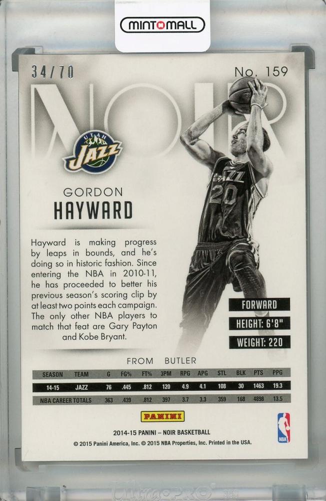 2014-15 Panini Noir Utah Jazz Gordon Hayward Base Color #159 34/70