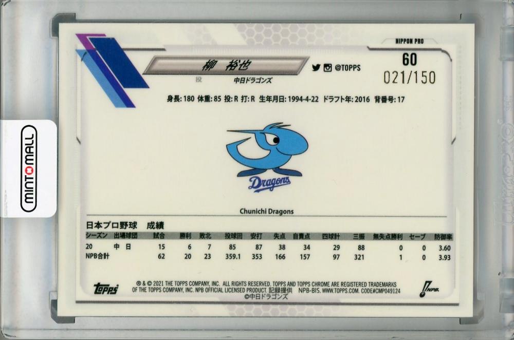 2021 Topps NPB Chrome 中日ドラゴンズ 柳裕也 Base Blue Reeractor (パラレル版) 021/150
