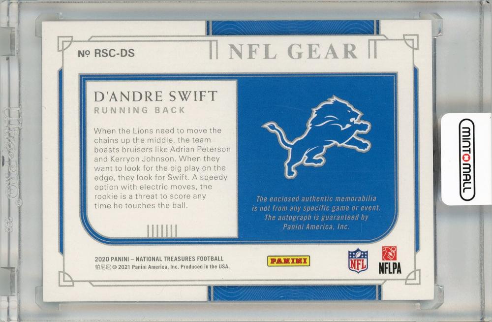 2020 PANINI National Treasures Rookie NFL Gear Signature Combos D'Andre Swift Detroit Lions 【74/99】