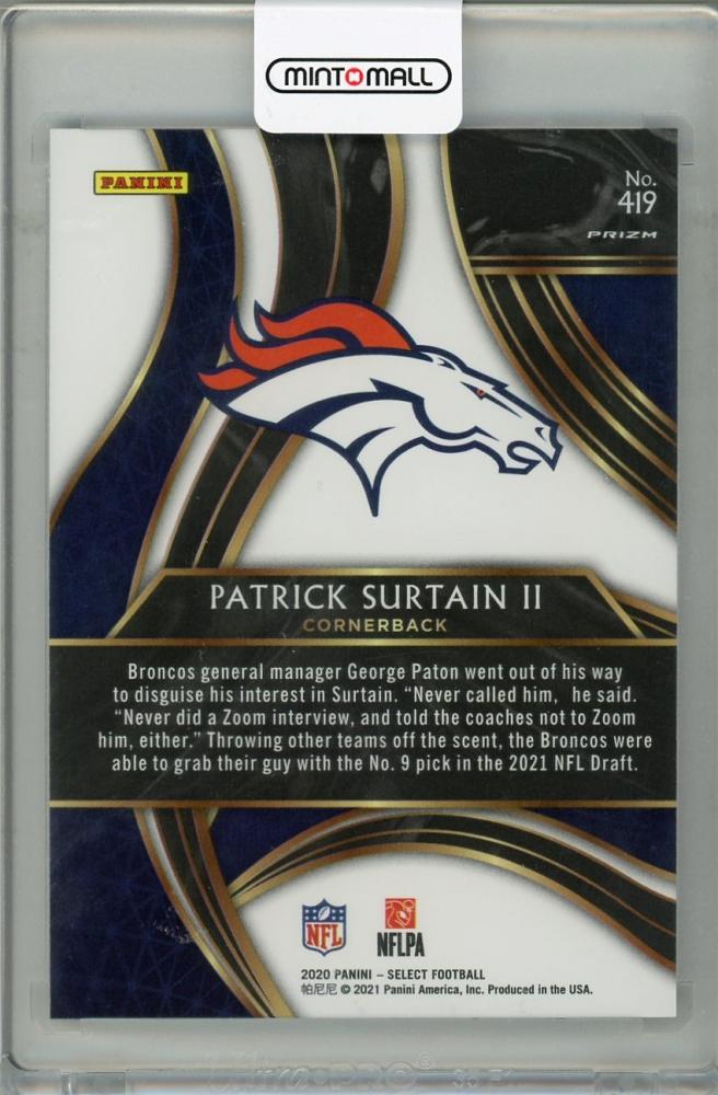 2020 Panini Select Denver Broncos Patrick Surtain II 2021 XRC Prizm Redemption