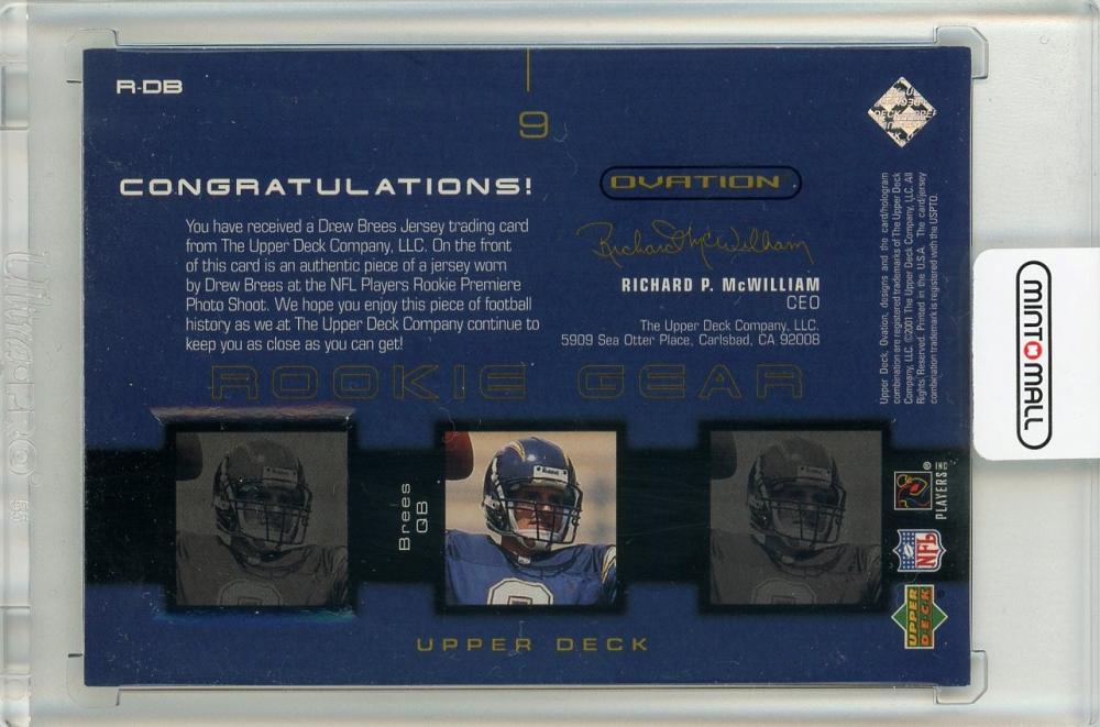 2001 UD Ovation Drew Brees Rookie Gear Jersey