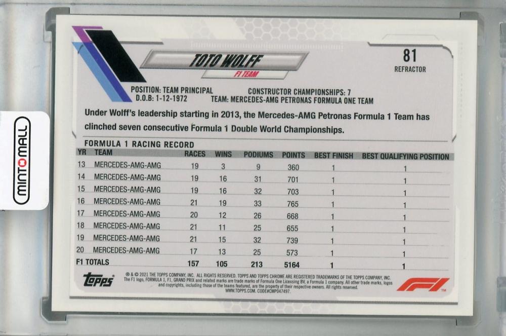 2021 Topps Chrome Formula 1 Racing Mercedes-AMG Petronas F1 Team Toto Wolff F1 CREW Base Refractor(パラレル版)