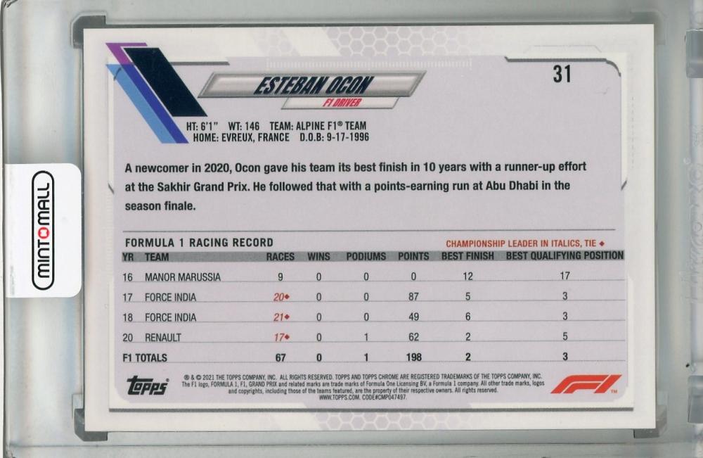 2021 Topps Chrome Formula 1 Racing Alpine F1 Team Esteban Ocon F1 RACERS Base B&W RayWave Refractor(パラレル版)