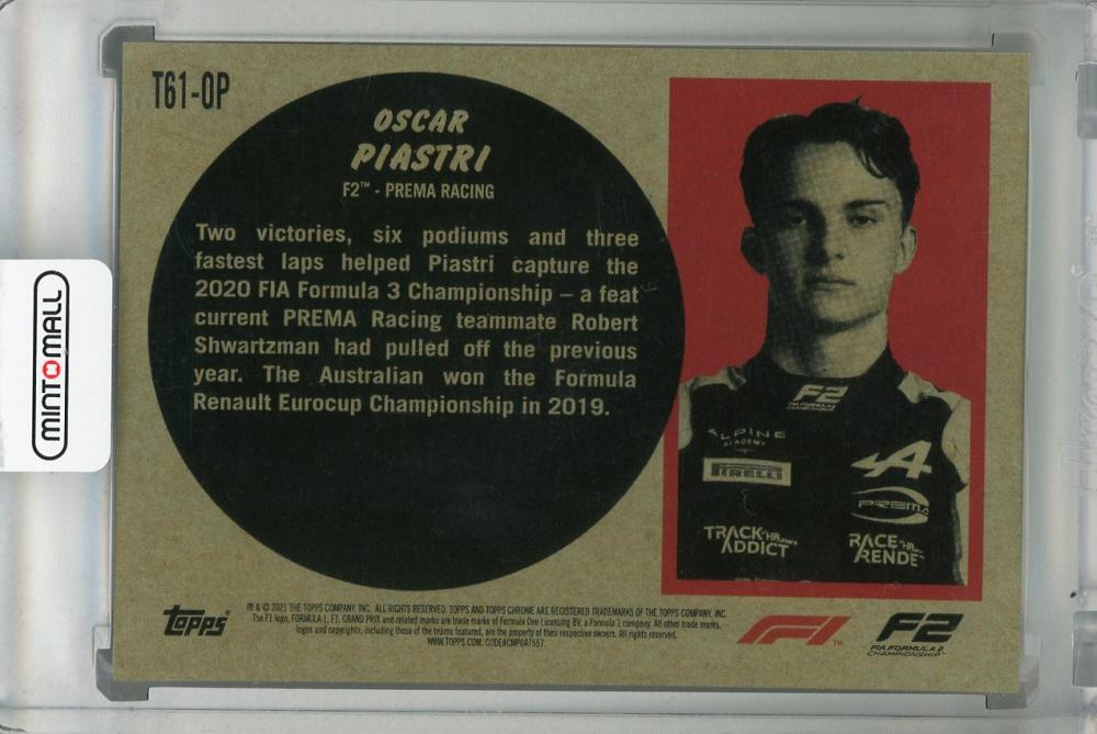 2021 Topps Chrome Formula 1 Racing F2 - Prema Racing Oscar Piastri 1961 Topps Sports Cars