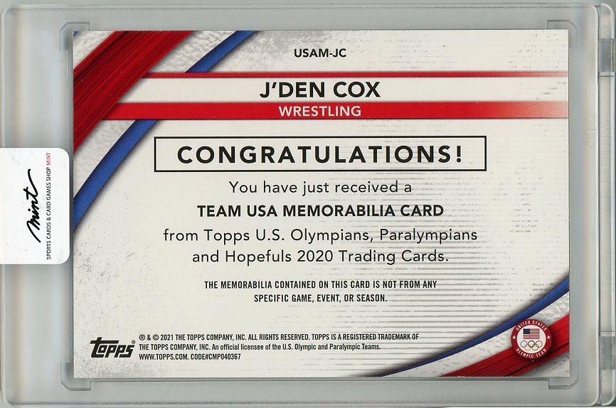 2020 Topps U.S Olympics & Paralympics Team Hopefuls J'Den Cox Memorabilia