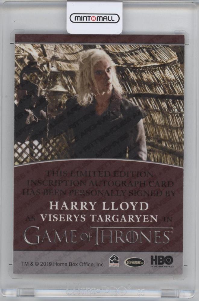 2021 RITTENHOUSE GAME OF THRONES IRON ANNIVERSARY Harry Lloyd as Viserys Targaryen Inscription Autograph Card