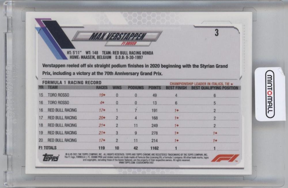 2021 TOPPS CHROME Formula 1 Max Verstappen #3 Base Card
