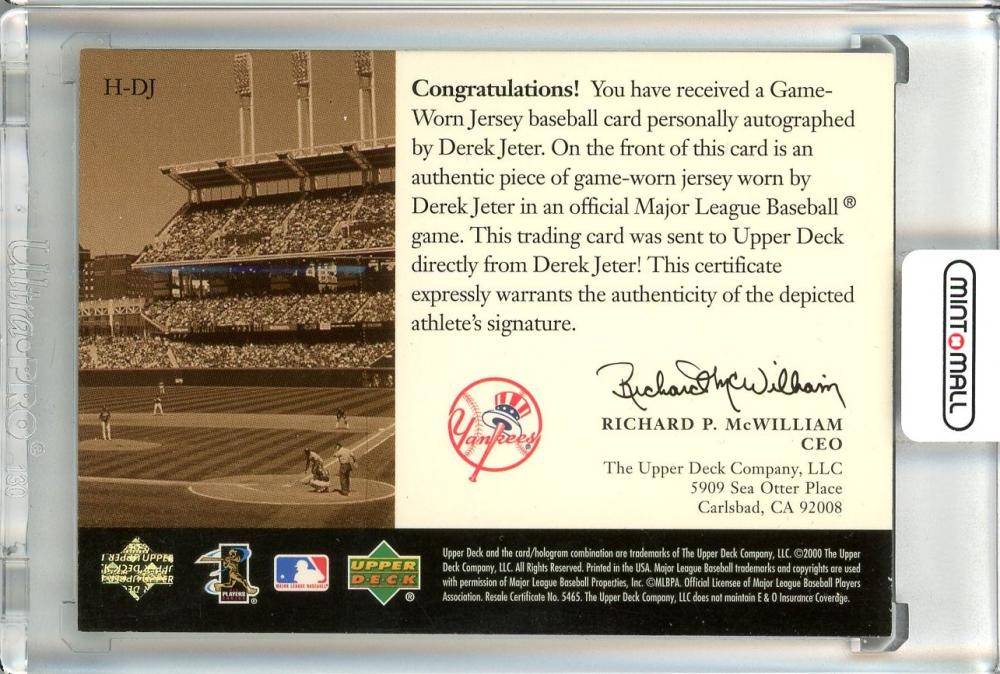 2000 Upper Deck New York Yankees Derek Jeter 100% Authentic Memorabilia Game Jersey