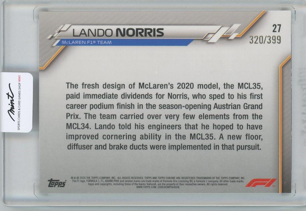 2020 Topps Chrome Formula 1 Purple Refractors #27 Lando Norris/F1 Cars 320/399