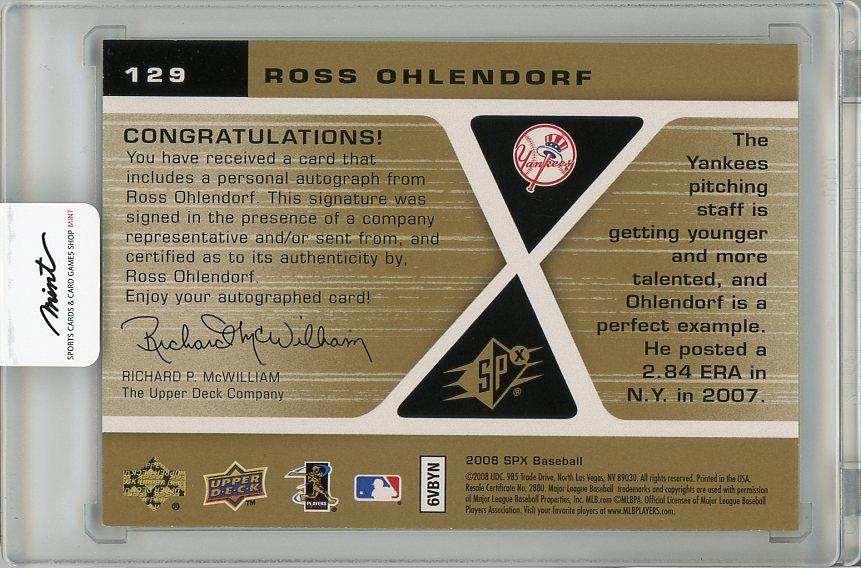 2008 UPPER DECK SPx Ross Ohlendorf (ヤクルト) Autograph (RC)