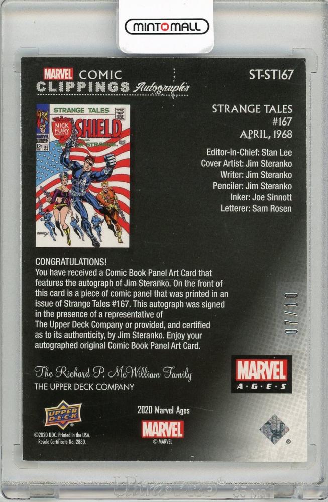 2020 UPPER DECK Marvel Ages Comic Clippings Autographs Jim Steranko - Writer and Penciller, Strange Tales #167 【07/10】