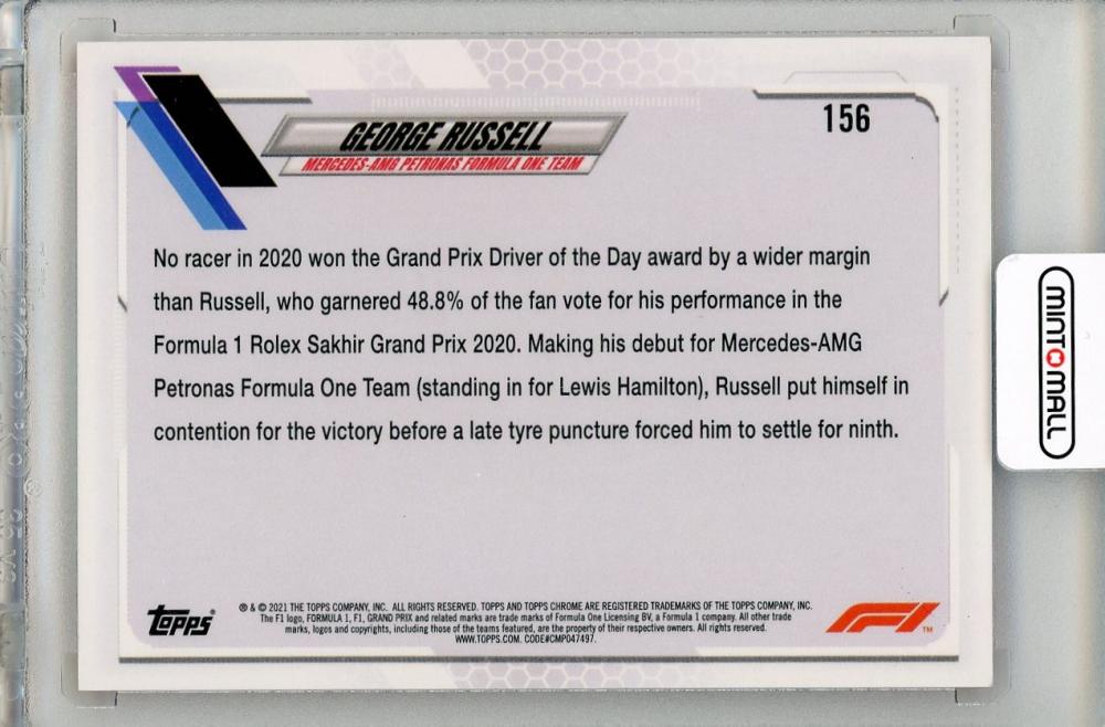 2021 TOPPS Chrome Formula 1 Orange Red Refractors #156/Driver of the Day George Russell Williams Racing