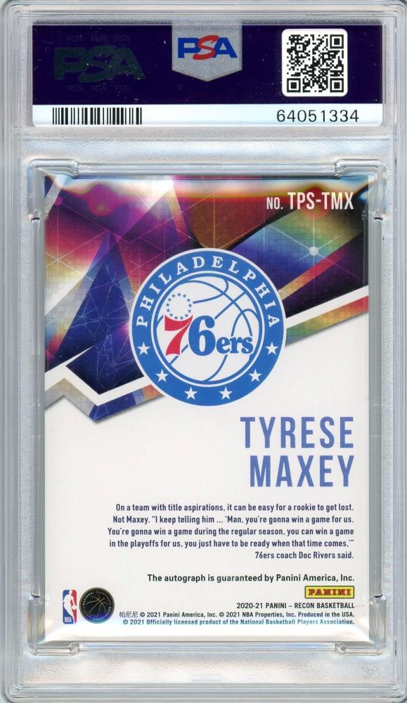 【PSA9】 2020-21 PANINI RECON Philadelphia 76ers Tyrese Maxey True Potential Signatures Autograph Card Gold 【09/10】
