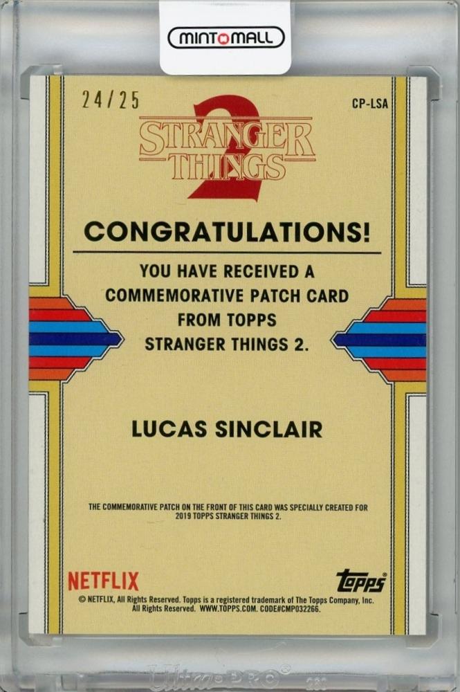 2019 TOPPS Stranger Things Season 2 Commemorative Patches Purple #CPLSA /Palace Arcade Caleb McLaughlin as Lucas Sinclair 24/25