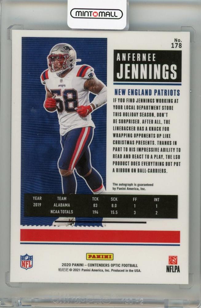 2020 PANINI Contenders Optic New England Patriots ROOKIE TICKET Autographs #178 / Anfernee Jennings