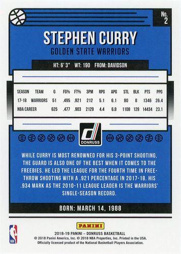 2018-19 Donruss #2 Stephen Curry レギュラーカード
