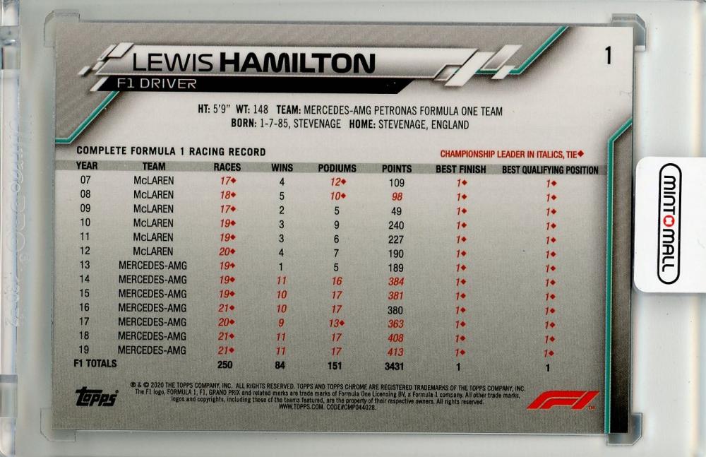 2020 TOPPS Chrome Formula 1 Mercedes-AMG Petronas Formula One Team Lewis Hamilton #1