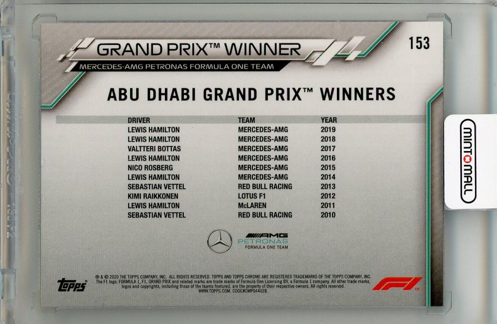2020 TOPPS Chrome Formula 1 Mercedes-AMG Petronas Formula One Team Lewis Hamilton 70th Anniversary Gold Refractors #153