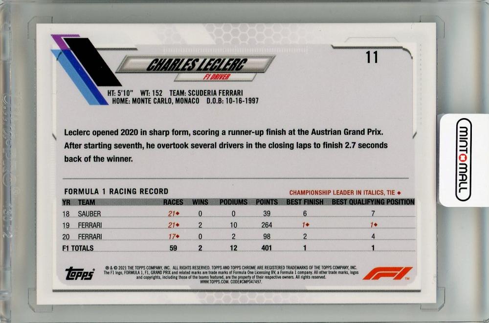 2021 TOPPS Chrome Formula 1 Scuderia Ferrari Charles Leclerc #11